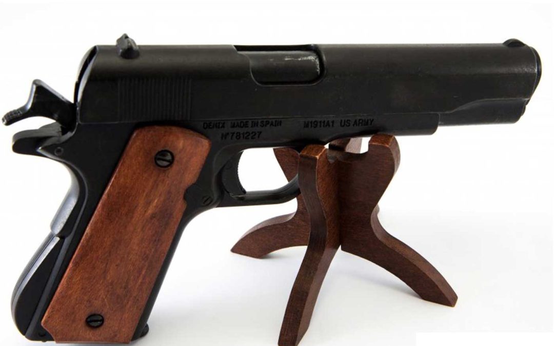 Pistola Automática 45 M1911 A1 USA «1ª 𝓨 2ª 𝓖𝓾𝓮𝓻𝓻𝓪 𝓜𝓾𝓷𝓭𝓲𝓪𝓵» Con Cachas de Madera DENIX Ref 9316